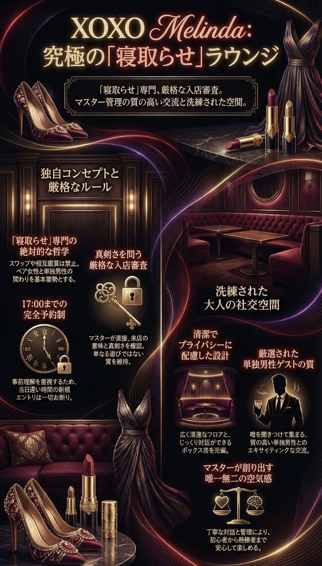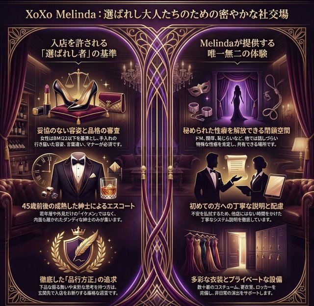 XoXo Melindaは、誰でも安心して過ごしていただける素敵な出会いのお店です。一方で誰でも無条件にご入店いただけるような安易なお店ではありません。